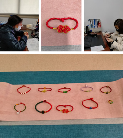 下午3:30分,活动准时开播,陈晓红通过手机边制作边讲解,如何绕绳、串珠、打结、收尾……,女职工通过手机屏幕认真学习,不懂的地方,虚心请教,对大家的问题,陈晓红都耐心的予以解答。经过1个多小时的学习、编织,望着自己成功编织的祝福手绳,大家绽放出喜悦的笑脸。